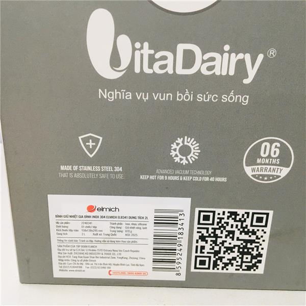 BÌNH GIỮ NHIỆT Gia Đình Inox 304 Elmich EL8341 DUNG TÍCH 2 LÍT (Vitadairy)  BINH GIU NHIET Gia Dinh Inox 304 Elmich EL8341 DUNG TICH 2 LIT (Vitadairy)