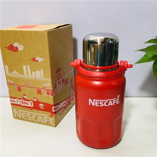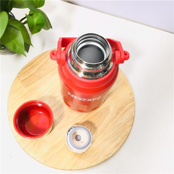 BÌNH GIỮ NHIỆT NESCAFE MÀU ĐỎ 700ml Có Quai Xách