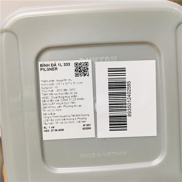 Bình Đá Vuông Minice Duy Tân 1 Lít - 333 PILSNER MÀU XÁM