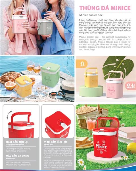 + Bình có phần quai xách chắc chắn, giúp di chuyển dễ dàng cùng lớp cách nhiệt PU Foam giúp giữ lạnh đồ uống, thực phẩm trong thời gian dài.