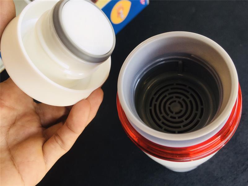 - Bình có 2 nắp: nắp lượt trà và nắp bỏ đá