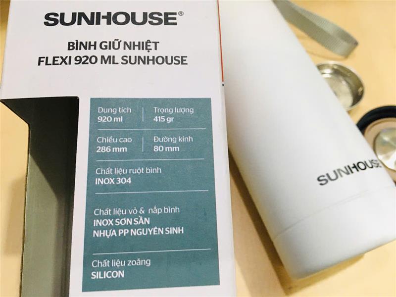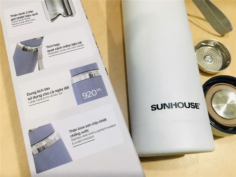 Bình Giữ Nhiệt SUNHOUSE FLEXI 920ml Có Quai Xách - MÀU TRẮNG