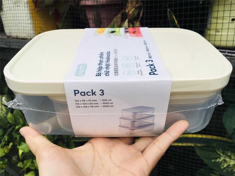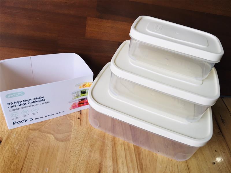 Bộ 3 Hộp Thực Phẩm Chữ Nhật 2000ml, 1000ml, 500ml HOKKAIDO INOCHI  Bo 3 Hop Thuc Pham Chu Nhat 2000ml, 1000ml, 500ml HOKKAIDO INOCHI