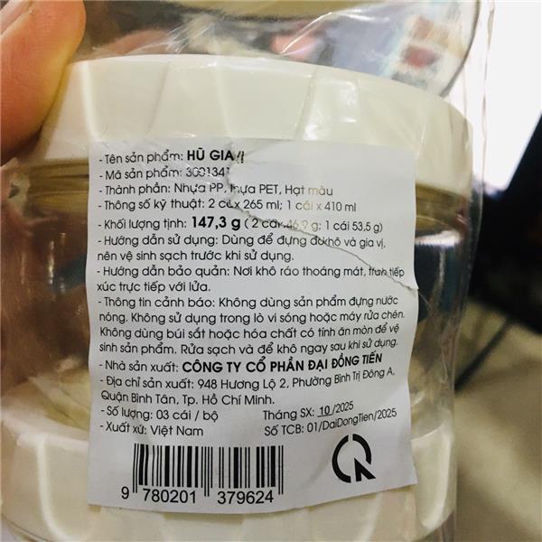 - 2 hũ nhỏ 265ml – thích hợp đựng muối, tiêu, bột ngọt.
