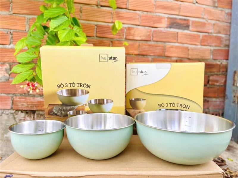 Bộ 3 Tô Sắc Màu Inox 304 Five Star Có Vạch Chia Dung Tích MÀU XANH