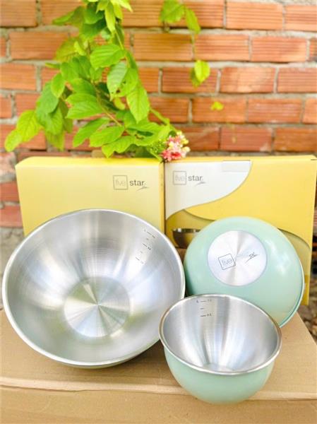 Bộ 3 Tô Sắc Màu Inox 304 Five Star Có Vạch Chia Dung Tích MÀU XANH  Bo 3 To Sac Mau Inox 304 Five Star Co Vach Chia Dung Tich MAU XANH