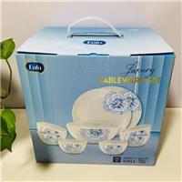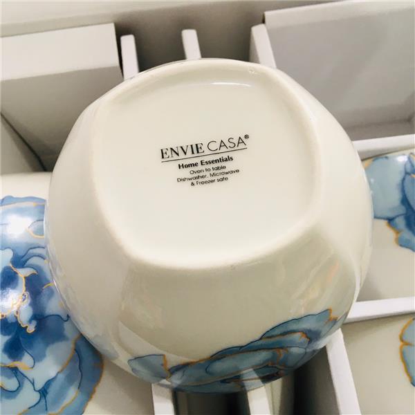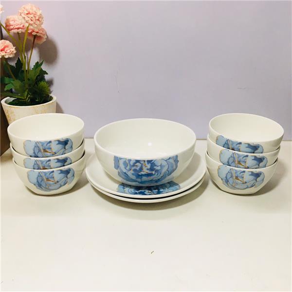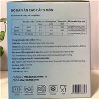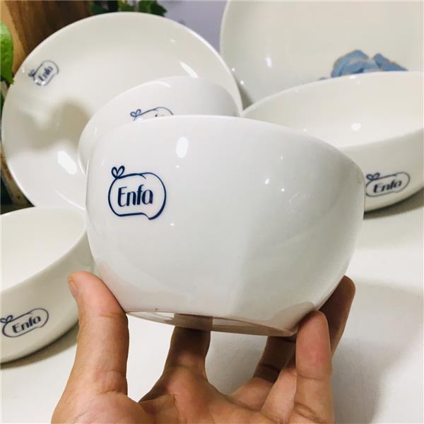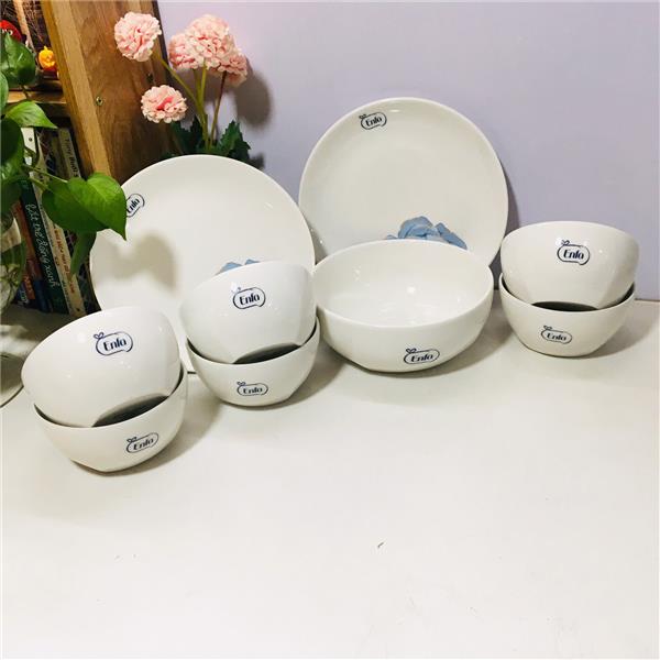 - Bộ gồm: 1 tô tròn 7 inches; 2 dĩa tròn 8 inches; 6 chén ăn cơm 4.5 inches đáy vuông bầu, miệng tròn
