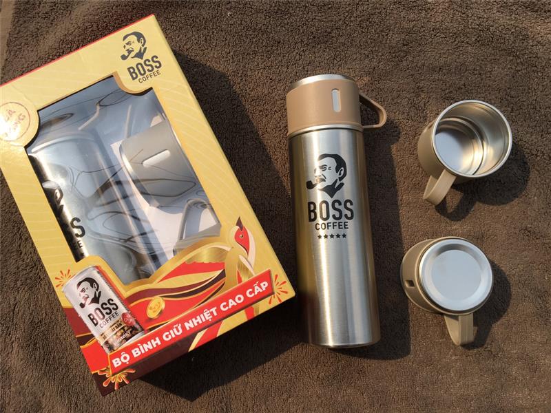 Bộ Bình Giữ Nhiệt BOSS COFFEE + 3 Ly Inox 304