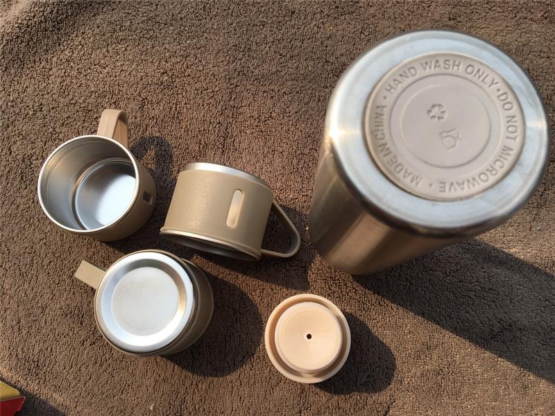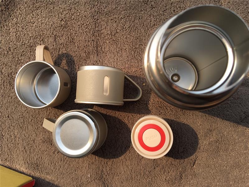 - Thành phần: Thân ngoài inox 201, thân trong inox 304, nắp nhựa PP + inox 304, ron silicon.
