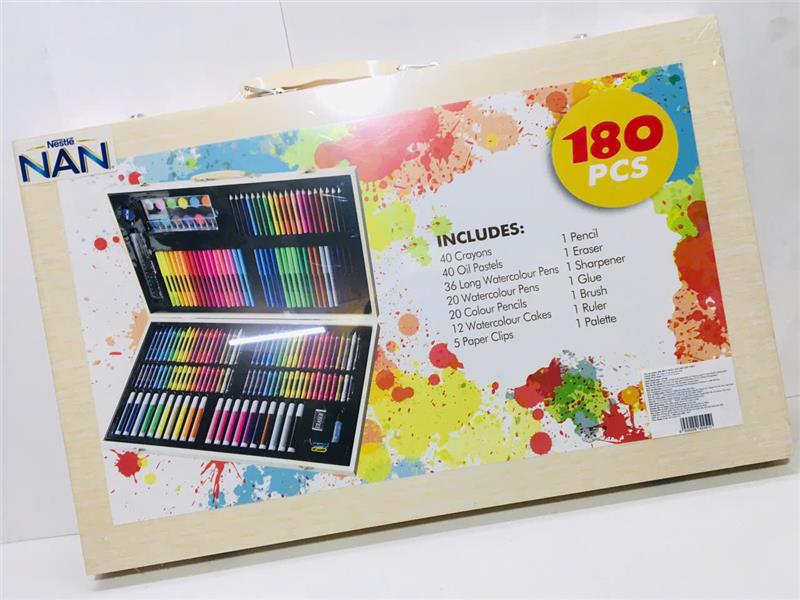 Bộ Bút Màu Đa Năng NAN 180 Chi Tiết Cho Bé Sáng Tạo - HỘP GỖ