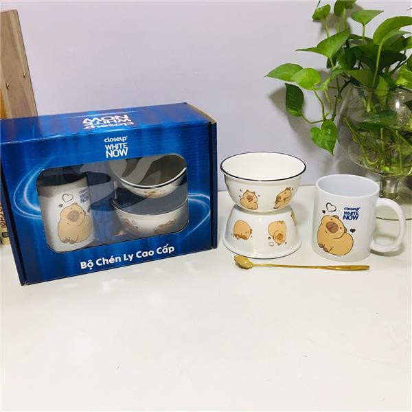 Bộ Chén Ly Muỗng Capybara Close Up  Bo Chen Ly Muong Capybara Close Up