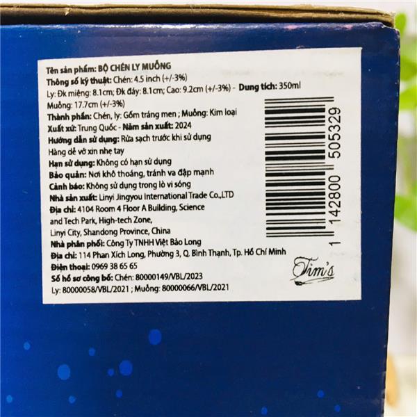 - Thành phần: ly, chén bằng gốm tráng men; muỗng bằng kim loại