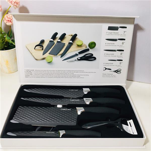 + Ngoài ra với thiết kế tinh tế và màu sắc sang trọng sẽ góp phần làm cho căn bếp nhà bạn thêm sang trọng, với chất liệu chống dính và không gỉ giúp bề mặt dao luôn sáng bóng và sạch sẽ.