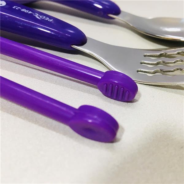 - Muỗng, nĩa: Thiết kế tay cầm cong tự nhiên phù hợp với cách cầm nắm của bé.