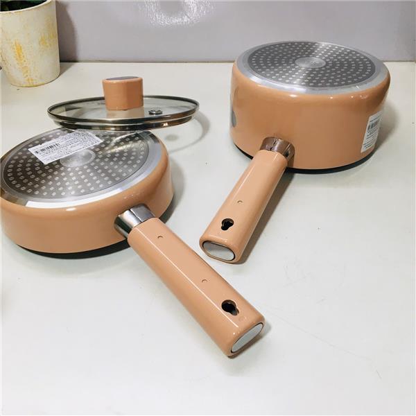 - Bộ gồm: 1 nồi, 1 chảo, 1 nắp, 1 hộp đựng bằng carton