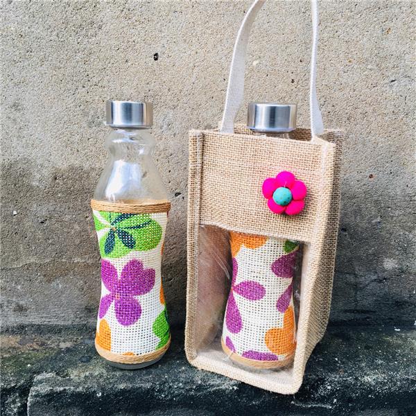 CHAI THỦY TINH Bọc Cói HOA 500ML