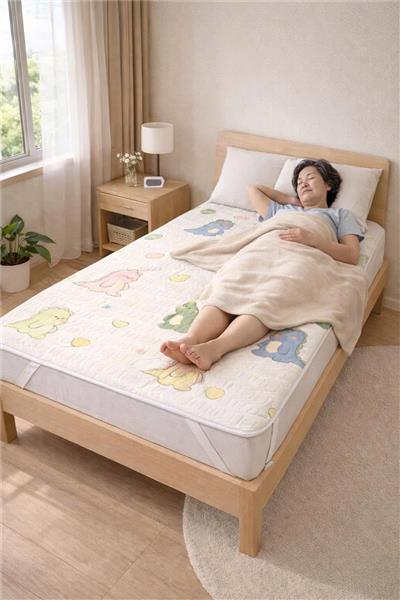 - Chất liệu: mặt trên là vải tencel; bề mặt giữa: cao su tổng hợp; bề mặt dưới: lớp vải chống thấm kết hợp các hạt chống xê dịch