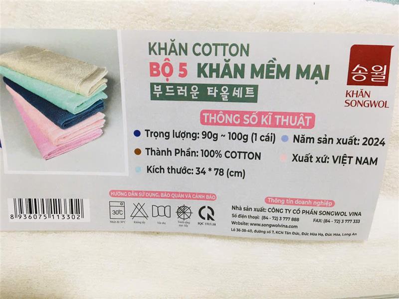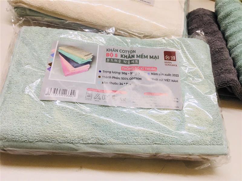 - Hàng Songwol (Cty Hàn Quốc) cắt tem, chất khăn mềm mịn kháng khuẩn, không có bụi khăn.