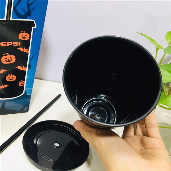 ĐEN: Ly Nhựa HALLOWEEN PEPSI 710ML Có Nắp Đậy Kèm Ống Hút
