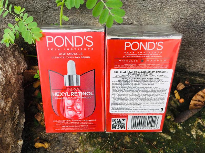 CÔNG DỤNG CHÍNH: Tinh chất serum ngăn ngừa dấu hiệu lão hoá ban ngày pond's age miracle ultimate youth hexyl-retinol tm với 50x* hexyl-retinol, siêu phức hợp giúp giảm 98% đốm nâu và 74% nếp nhăn sau 8 tuần+