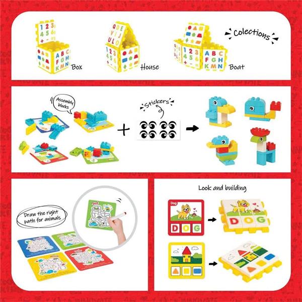 + Bộ đồ chơi trẻ em tốt nhất này bao gồm 30 khối đầy màu sắc để xây dựng các con vật: Hươu, Vịt, Chim cánh cụt, Cá voi