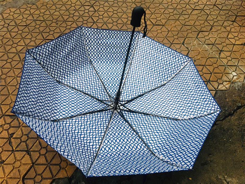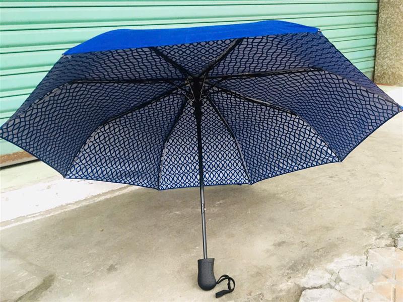 - Dù gấp 3, 2 lớp chống tia UV, khung dù 8 nan bằng kim loại, bấm bật tự động một chiều.