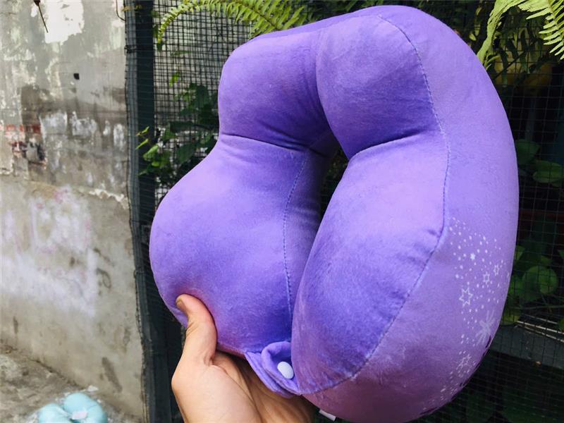 Gối Đỡ Cổ Du Lịch Hình Hoa Có Nút Gài MÀU TÍM