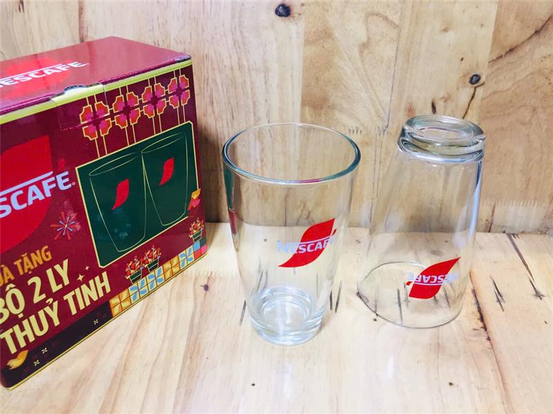 Hộp 2 Ly Thủy Tinh NESCAFE THÂN LỠ 350ml  Hop 2 Ly Thuy Tinh NESCAFE THAN LO 350ml