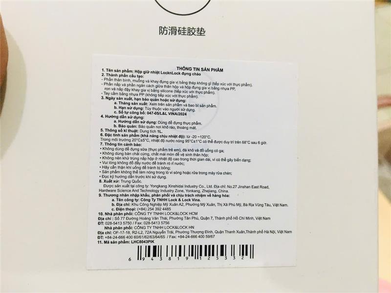 - Nhà cung cấp: Cty TNHH LocknLock HN