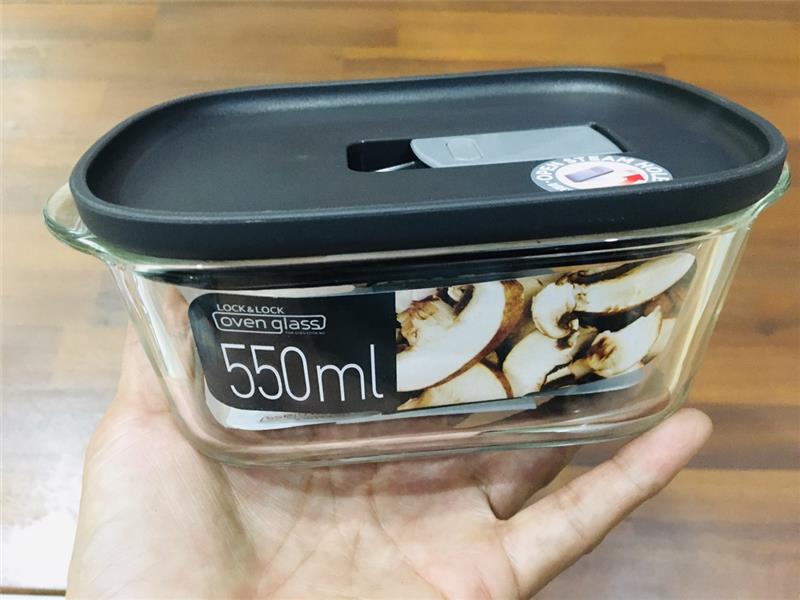 Hộp Thủy Tinh Chữ Nhật Chịu Nhiệt Lock&Lock Steam Hole 550ml NẮP ĐEN  Hop Thuy Tinh Chu Nhat Chiu Nhiet Lock&Lock Steam Hole 550ml NAP DEN