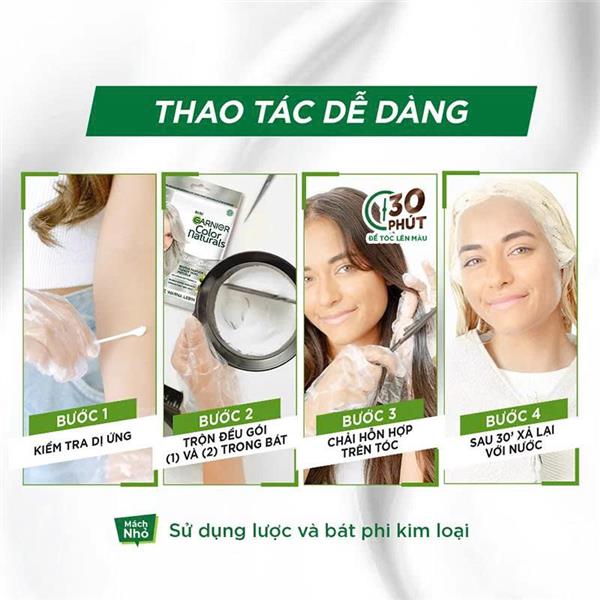 3. Sử dụng dễ dàng: Thoa hỗn hợp lên tóc khô, chưa gội bằng lược nhuộm tóc. Kết cấu dễ dàng tán đều và không nhỏ giọt.