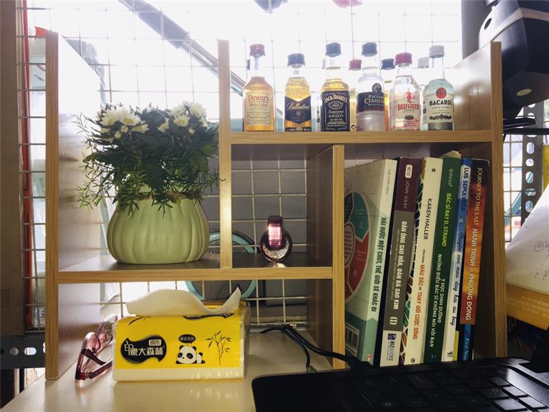 * Shop chụp chung bình bông với kệ sách mini shop đang bán và sử dụng tại bàn làm việc để bạn dễ hình dung kích thước.