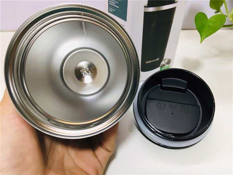 + Nắp ly có ron silicone chống tràn, miệng ly rộng dễ vệ sinh