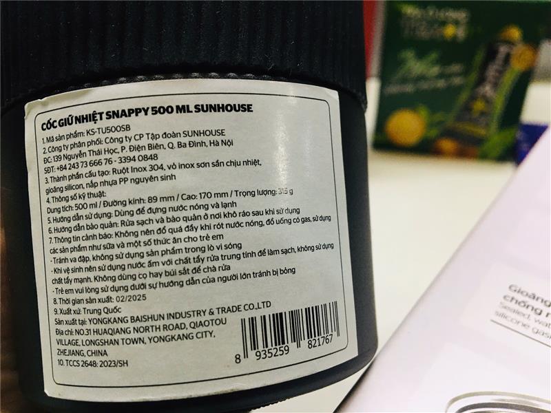 - Thành phần: bên trong Inox 304, bên ngoài inox 201, nắp nhựa PP, gioăng silicon