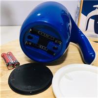 + Ly được làm từ chất liệu thép không gỉ, với ba cánh quạt nhỏ ở đáy ly, hoạt động bằng pin.