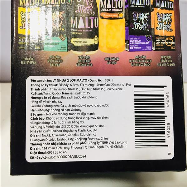 Ly Nhựa MALTO MÀU ĐEN 2 Lớp Size Lớn 760ml