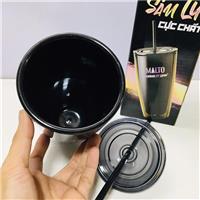 - Thành phần: thân nhựa và nắp PS, ống hút nhựa PP, ron silicone