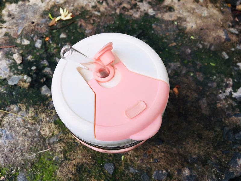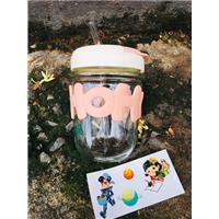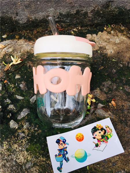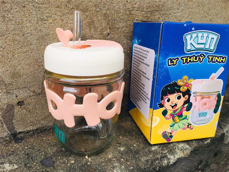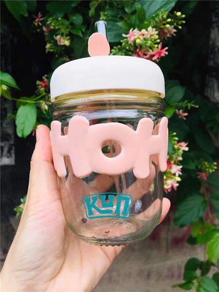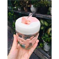 Ly Thuỷ Tinh HOHO 350ml Có Nắp, Ống Hút (KUN)