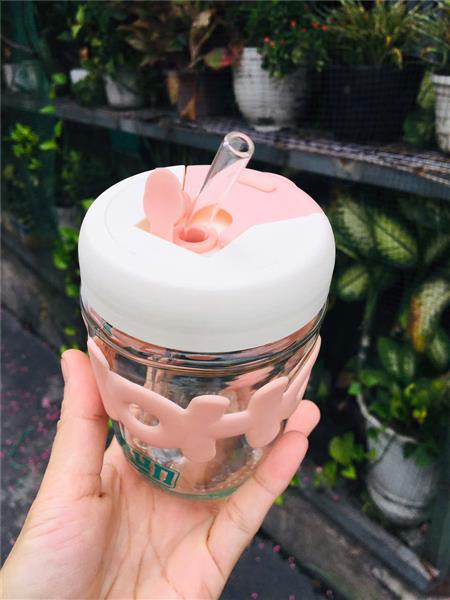 Ly Thuỷ Tinh HOHO 350ml Có Nắp, Ống Hút (KUN)  Ly Thuy Tinh HOHO 350ml Co Nap, Ong Hut (KUN)