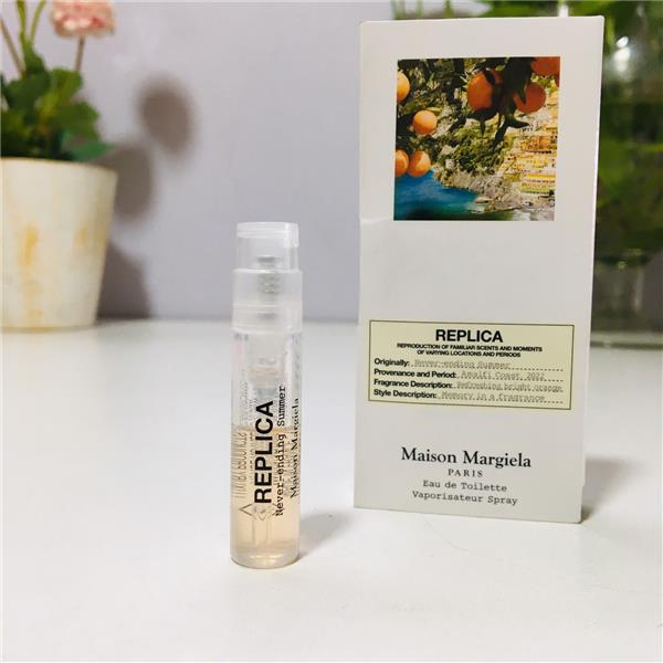Nước hoa Maison Margiela Replica Never Ending Summer (Eau de Toilette) được ra mắt vào năm 2025, là một mùi hương cam chanh tươi mát, cay nồng lấy cảm hứng từ cảm giác của một kì nghỉ hè bất tận trên bờ biển Amalfi của Ý.