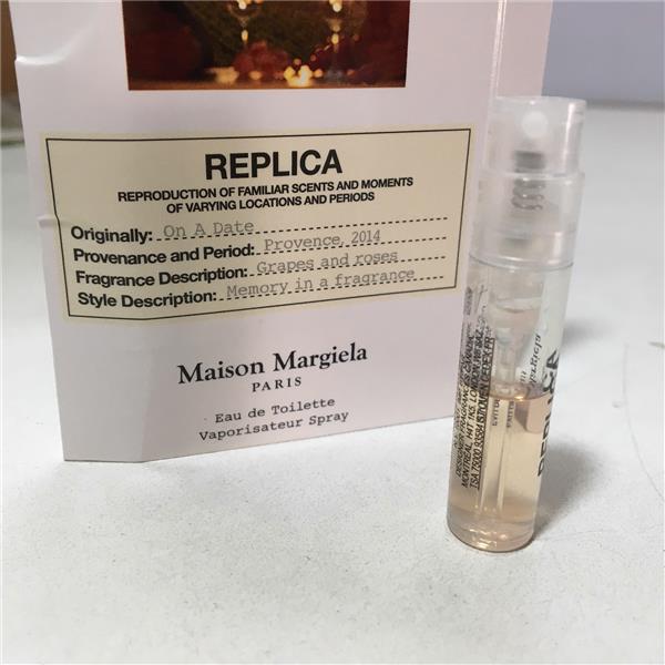 Nước hoa Maison Margiela Replica On A Date là một loại nước hoa unisex (dành cho cả nam và nữ) với hương hoa cỏ trái cây. Nó được thiết kế để gợi lên ký ức về một buổi hẹn hò lãng mạn vào một buổi chiều muộn mùa hè tại vườn nho ở Provence, Pháp.