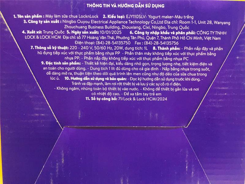 - Nhà cung cấp: Cty TNHH Lock & Lock HCM