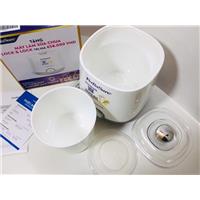 - Thành phần: phần nắp đậy và phần hũ nhựa tiếp xúc với thực phẩm bằng nhựa PP, phần thân máy không tiếp xúc với thực phẩm bằng nhựa PP, phần nắp đậy không tiếp xúc với thực phẩm bằng nhựa PC