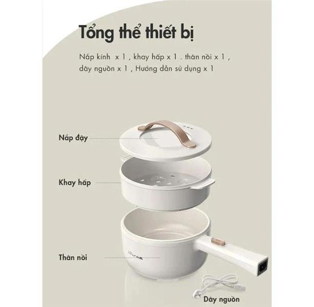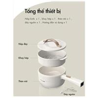 - Sản phẩm gồm: 1 nồi, 1 xửng hấp, 1 nắp đậy, 1 dây điện, 1 phiếu bảo hành, 1 sách hướng dẫn sử dụng, 1 hộp đựng nồi có chèn xốp