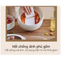 - Thành phần: Lòng nồi chống dính, xửng hấp nhựa, nắp kính, vỏ nồi bên ngoài nhựa