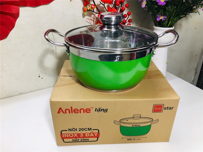 Nồi Inox FIVESTAR 3 Đáy SẮC MÀU 20cm Nắp Kính MÀU XANH