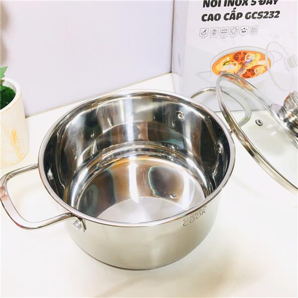 Nồi Inox GREEN COOK 5 Đáy Size 20cm Nắp Kính GCS232