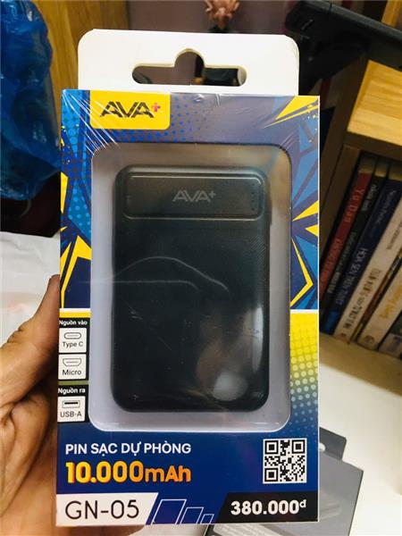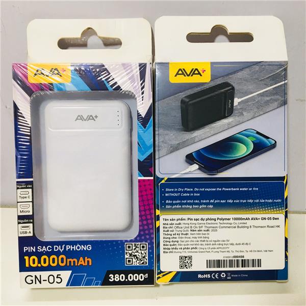 Pin sạc dự phòng Polymer 10000mAh AVA+ GN-05 là phụ kiện nhỏ gọn với dung lượng 10.000mAh và hiệu suất 60%. Sản phẩm hỗ trợ sạc 2 thiết bị cùng lúc qua cổng USB-A (5V-2.1A), có cổng vào Type-C/Micro USB tiện lợi và đèn LED báo pin, là lựa chọn hợp lý cho điện thoại, máy tính bảng.