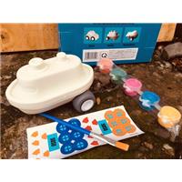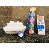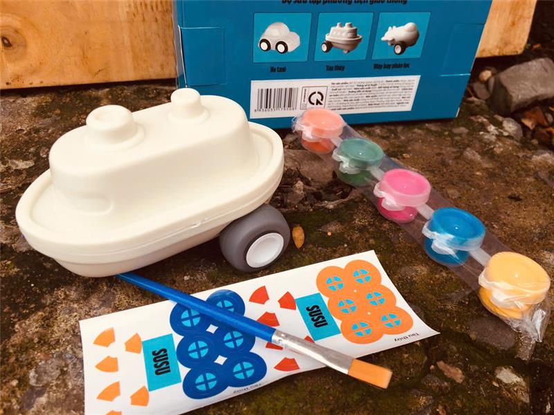 - Bộ gồm: 1 tàu thủy, 1 vỉ 5 hũ màu nước, 1 cây cọ, 1 sticker
