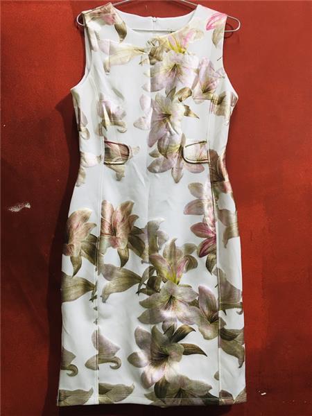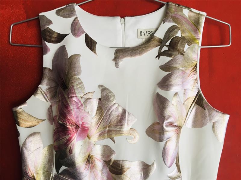TRẮNG: Đầm Ôm Enfocus Studio (Xuất US) Size 8 HOA GẤM KHÔNG TAY  TRANG: Dam Om Enfocus Studio (Xuat US) Size 8 HOA GAM KHONG TAY